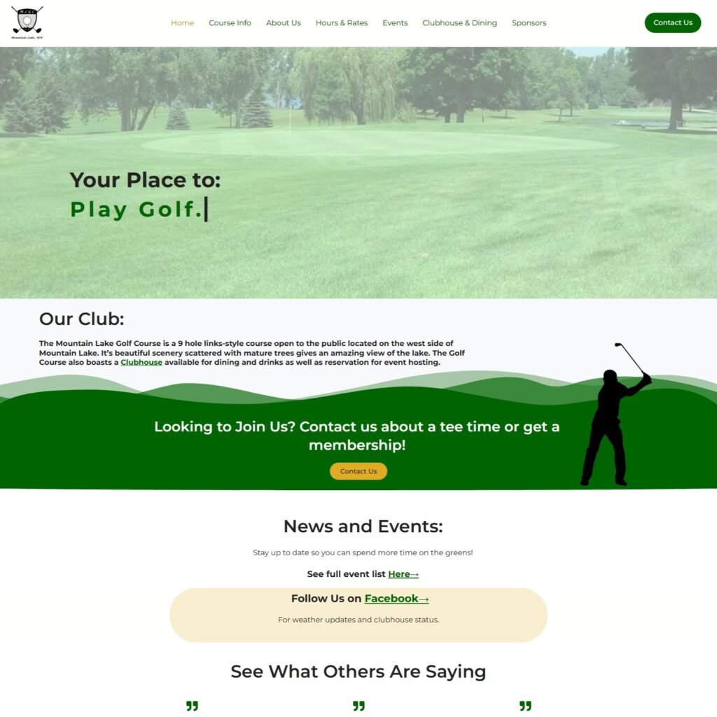 An informative website for the Mountain lake Golf Course with 17 pages made to capture the essence of the course