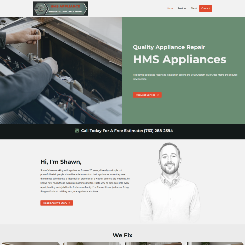 A small and straightforward appliance repair website made to target college/young adults in the Twin Cities area.