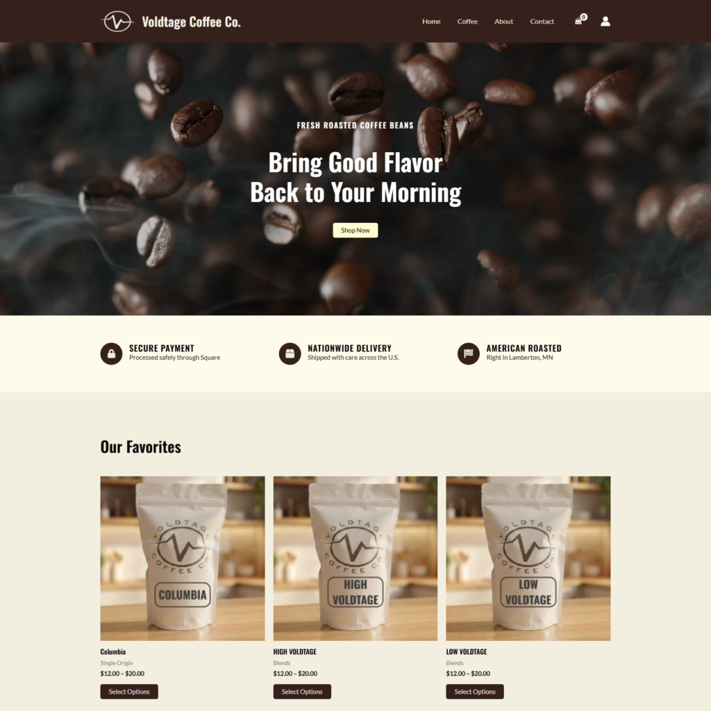 E-commerce website for a family-owned, small-batch roastery in Southwest Minnesota boasting bold flavors from around the world.