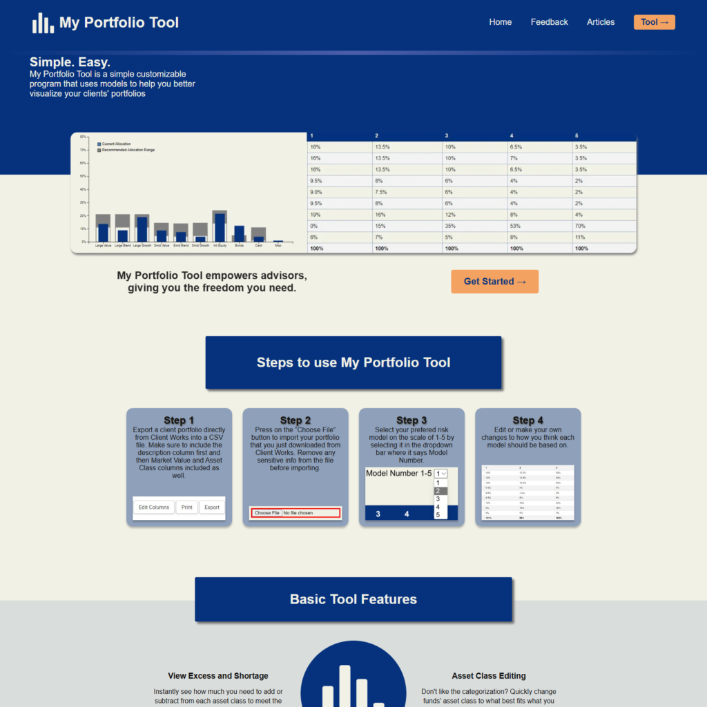 A completely custom-coded SaaS tool targeted at personal wealth managers for financial portfolio analysis
